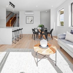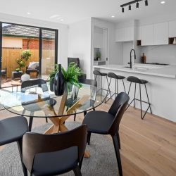 This brand new townhouse currently under construction delivers an exceptional low-maintenance lifestyle of quality and convenience in the heart of Fairfield. Cleverly crafted interior showcases four double bedrooms (three with built-in robes), stylish master with walk in robe and ensuite with a further two large sized bathrooms located on both ground and first floor, all with stone bench top vanities, incorporating a bath in the upstairs central bathroom with tiling from floor to ceiling throughout the bathrooms. Filled with natural light, the open-plan living/meals area is accompanied by a tastefully-appointed kitchen complete with premium stone waterfall benchtop and splashback, soft-close cabinetry and Miele appliances. Along with split-system heating/cooling in every bedroom and living area, bedrooms upstairs take advantage of expansive city views, the home also includes double glazed windows throughout, an alarm system, video door bell, high square-set ceilings, timber floors, solid timber staircase, walk in laundry, fully landscaped north facing courtyard with storage shed and single lock up garage with remote panel lift door and separate car space on title. Positioned to perfection, it’s walking distance to village shops and supermarkets, cafes and restaurants, parklands, popular primary and secondary schools, bus, train to the CBD as well as easy access to the Eastern freeway.